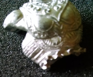 So not only do we have gaps and ill-fitting pieces, but, once again, we have mold line issues, as well as some glaring flash issues (as you can see under the head's chin, along one of the arms, and a few at the bottom of the chest, causing trouble when it comes to fitting it to the legs).